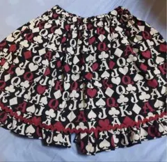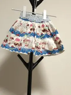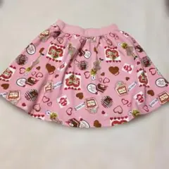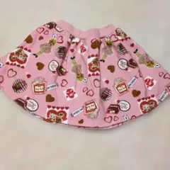 フルーツ柄のピンクスカート、ウエストゴム仕様で着脱簡単。