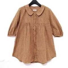 【未使用に近い】アースミュージックアンドエコロジー 五分袖 ブラウス 花柄ピンク