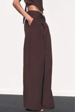 【美品】ZARA グリーンワイドパンツ