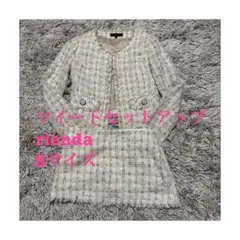 薄紫のフリル付きトップスとスカートのセットアップ、ストレッチ素材で快適な着心地。