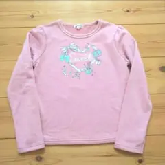 リボンモチーフが特徴的なピンクの長袖カットソーです。