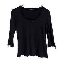 ピンクと白のストライプデザインのフリル付き長袖シャツ。目立たないですが小さなシミが幾つかあります。シワッとなっていますので、お手数ですが低温でアイロンしていただければと思います。