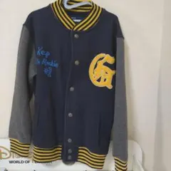 GAPのネイビーとオレンジのフリースジャケット、ジップアップデザインで快適な着心地。