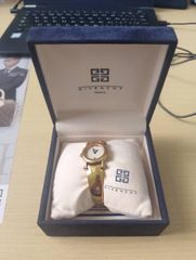 ゴールドのステンレススチール製のアナログクォーツ腕時計。