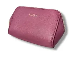 FURLA フルラ バーガンディポーチ ラウンドファスナー ゴールドロゴ