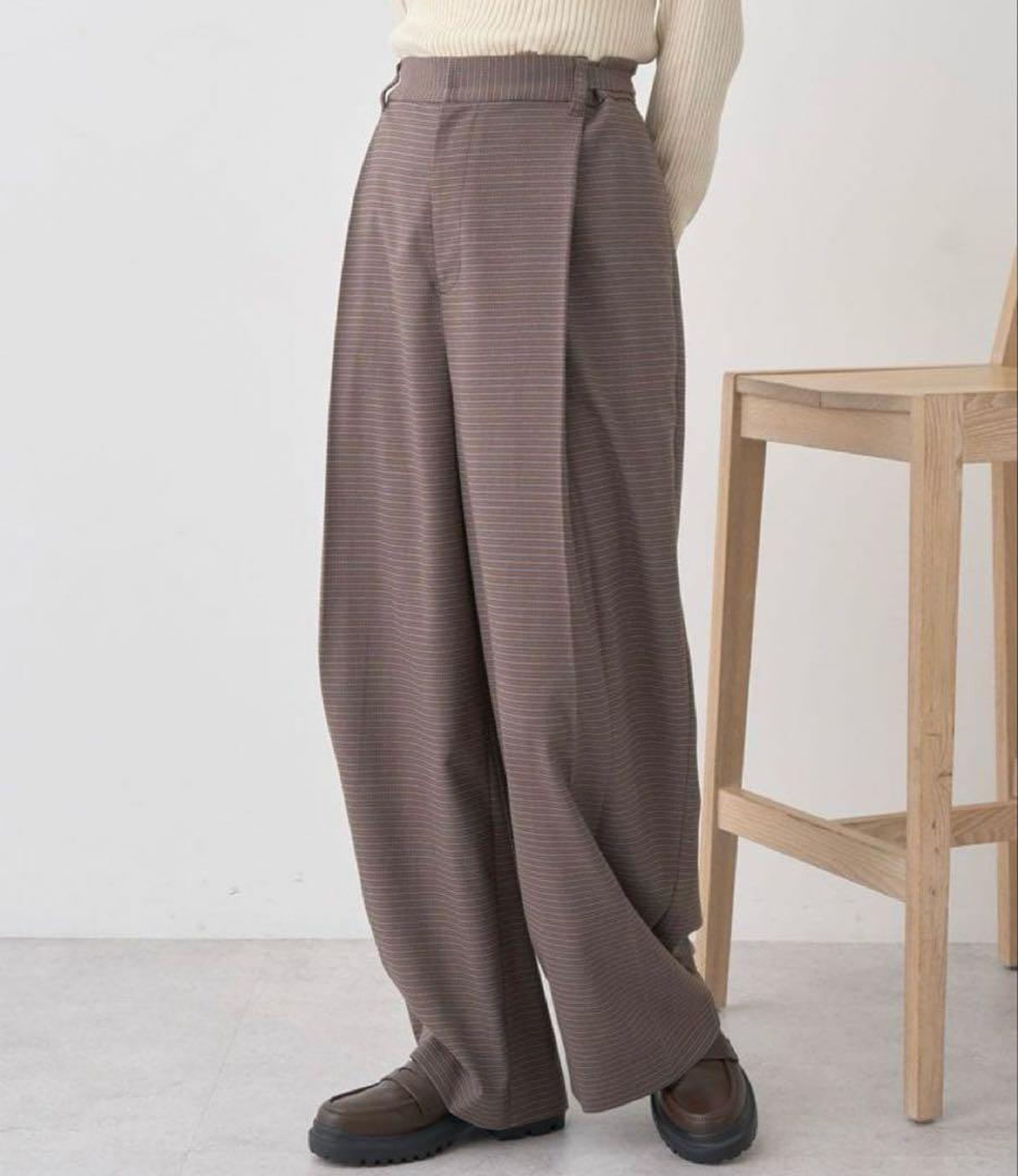 タックテーパードパンツ チェック ブラウン アースミュージック&エコロジー