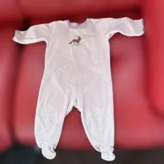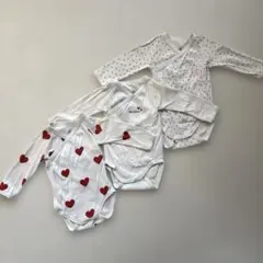 オーガニックコットン製の白と黒のストライプロンパース、胸にハートの刺繍付き。