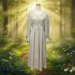 ★ 未使用 新品 春 夏 薄手 長袖 マキシ丈 ゆったり 花柄 ボタニカル