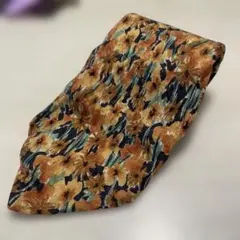 ウール素材のヘリンボーンデザイン、ブラウンとオレンジの配色が特徴のネクタイ。