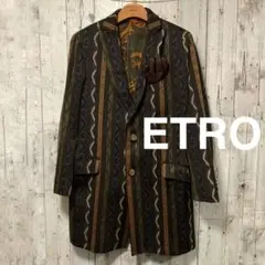 【極希少】ETRO イタリア製 総柄 刺繍デザイン ロングチェスターコート