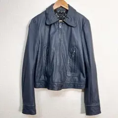 ブラックレザーの長袖ボタンシャツ、リラックスフィットデザイン。