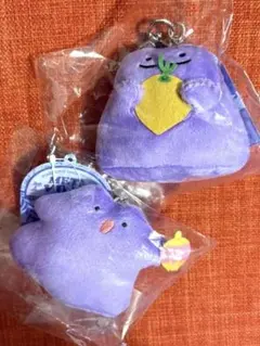 メタモンのキャラクターを模した柔らかい紫色のぬいぐるみ。