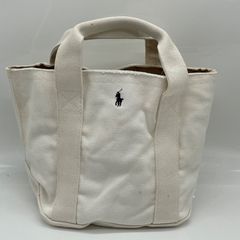 ネイビーのキャンバストートバッグ、ポロ馬の刺繍と番号3のデザインが特徴。