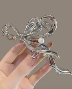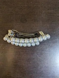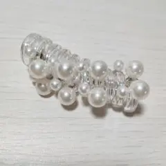 アイボリーのパール風ビーズと花モチーフのヘアクリップ2個セット。