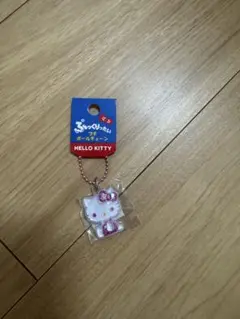 ピンクのヒョウ柄リボンとハローキティのデザインが特徴のキーホルダー。