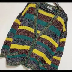 カーディガン ニット ロングカーディガン Vネック マルチカラー 派手 カラフル ミックスニット スペースダイ 上品 高級 MADEINITALY ビンテージ ヴィンテージ 長袖 ロングスリーブ 羽織 オールシーズン 通年 冷房対策