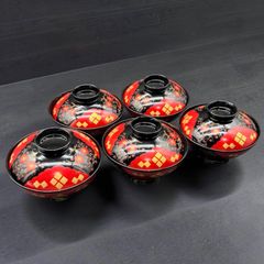 輪島塗 漆器 金蒔絵 蒔絵 沈金 蝶の図 蓋椀 蔵出し 5客