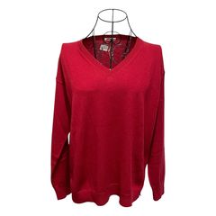 アクリル素材で快適な着心地の赤い長袖カーディガンです。