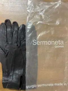 [Sermoneta]セルモネータレザーグローブ 本革手袋 ブラック 6.5