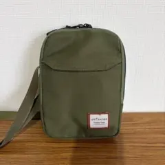 合成皮革製のライトグレーのスマホショルダーバッグ、ファスナー付きポケット付きです。