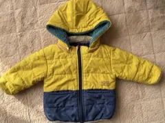 オリーブグリーンとカモフラージュ柄のジップアップアウター、ダウン風の中綿入りで保温性に優れています。