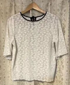 セオリア しまむら フリル付き ホワイト 五分袖トップス フォーマル オフィス