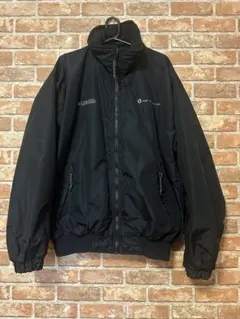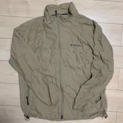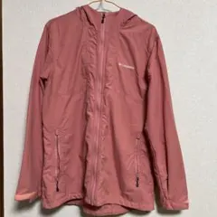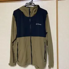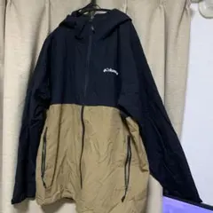 フード付きの黒いColumbiaジャケット、アウトドアに最適。