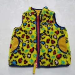 キルティングデザインの中綿リバーシブルベスト、グリーンとイエローの配色が特徴。