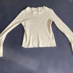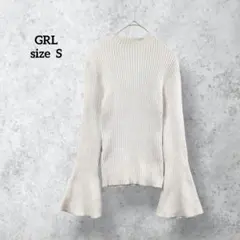 フレア袖デザインのホワイトニット、サイズF、着丈53cm。