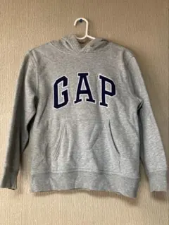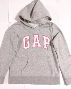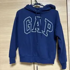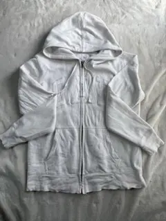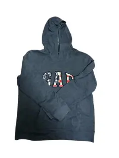 GAP ホワイトパーカー デニムパッチワークロゴ入りメンズSサイズ白フード付き