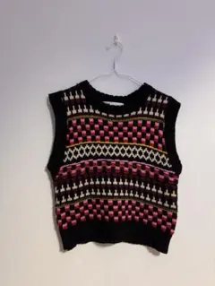 グレー系のノースリーブニットベスト、ボタン付きでカジュアルに着こなせます。