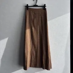 ラジエイトのベージュニットフレアスカートです。中にチュール付きロングペチコートを合わせて着るものです。