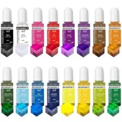 Bonsky レジン 着色剤 レジン液 エポキシ樹脂 着色剤 透明色-16色*10mlUVレジン用染料 エポキシ樹脂顔料 高濃度 レジン液用 カラー 樹脂着色用 樹脂/アルコールインク紙/ガラス/セラミック/金属などに適用 レジン着色