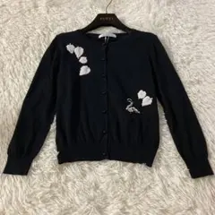 【美品】アベニールエトワールのブラックレース装飾 長袖カーディガン