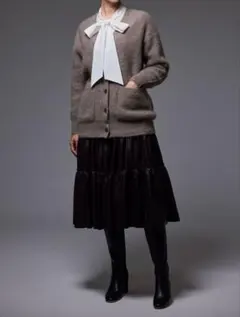 アベニールエトワールのブラックレース装飾が特徴的な長袖カーディガン。