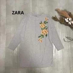 ZARA|花柄刺繍スウェット トレーナー|ネイビー|ザラ|オーバーサイズ|S〜M