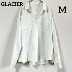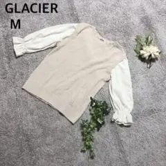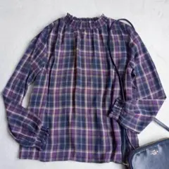 【グラシア】ドット柄 モックネック ゴムスリーブ レイヤード 長袖ブラウス