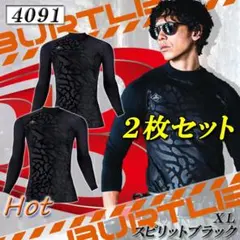 バートル ホットフィッテッド インナー 4091 ブラック Lサイズ 2枚セット