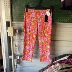 フラワープリントのイージーパンツ、快適なコットン素材。楽ちんパンツ。ポケット付き。伸縮性あり。