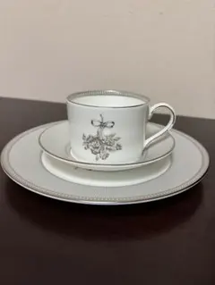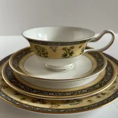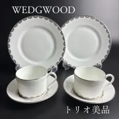 黒壺ウェッジウッド コロンビアセージ ティーカップとソーサ、パン皿のトリオ
