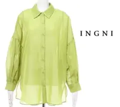(L) シアーシャツ ブラウス 裾袖レースシャツ 袖ヒモ リボン