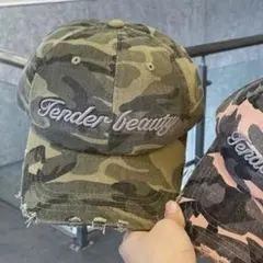 カーキ コーデュロイ ベースボールキャップ 迷彩柄
