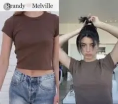 Brandy Melville レース VネックTシャツ 白ホワイト クロップド