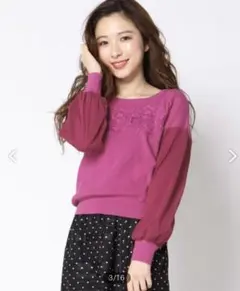 クイーンズコートQUEENS COURT ボーダーセーター 黒×白 パール
