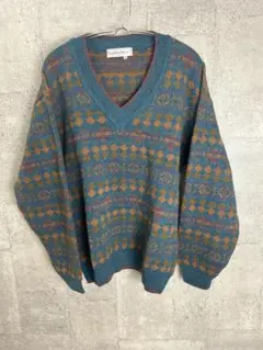 【イタリア製】プルオーバー コットン ニットセーター 総柄 長袖
