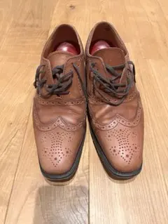 レザー製のブラウンレースアップドレスシューズ、パンチングデザインが特徴。