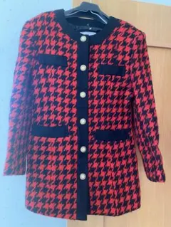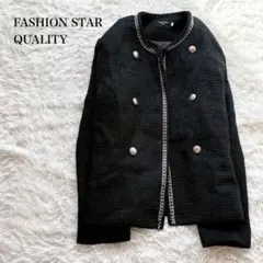ヴィンテージ】ツイード素材 フリンジデザイン 金ボタン ノーカラージャケット M