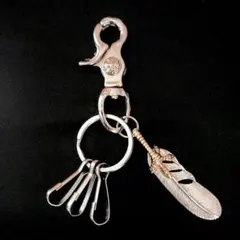 真鍮&ステンレス シルバー ターコイズフェザー レバー ブラス キーホルダー