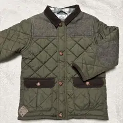 グレーとブラックの配色が特徴の中綿コート、4歳用。