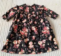 ボンポワン ワンピース 半袖 スモッキング 90 95 100 花 刺繍 バラ